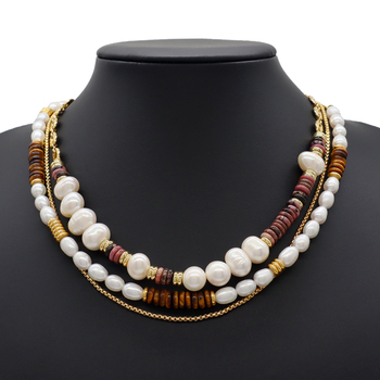 אלגנטי מפעל סין אופנה מסוגנן אופנה oem זהב מצופה זהב מים טריים שרשרת פנינים עם חרוזים אבן טבעית לנשים